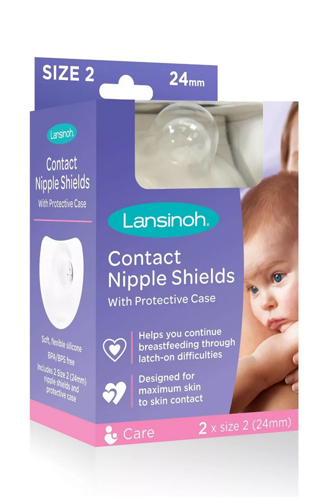 Lansinoh® Contact Nipple Shields are effective tools for addressing short term latch-on issues related to premature, small, or ill infant, flat or inverted nipples, tongue tie, lip tie, or overactive let-down. Includes two size 2, 24mm shields along with a protective case for hygienic and convenient storage. All nipple shields should be used under the advisement of a breastfeeding professional.