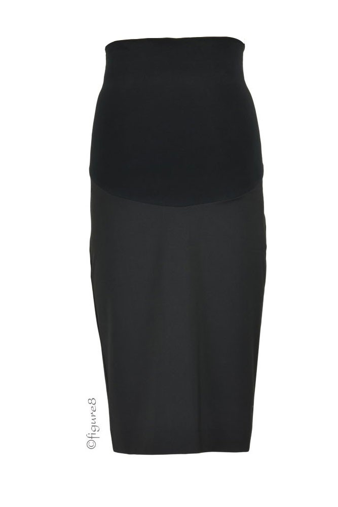 This over-the-bump maternity skirt gives you a perfect business look. Features back slit and fake back welt pockets.
