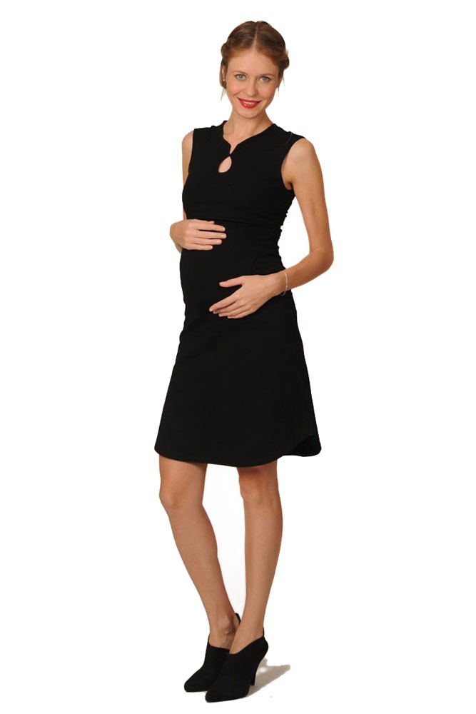 Peek-a-Boo's sleek Black Teardrop Nursing Dress is sleeveless for cool comfort and also perfect for layering. Great little black dress for the office or a night out! It can be worn throughout pregnancy and can also be used as a nursing dress for breastfeeding discreetly. To nurse, simply lift up under bust for discreet nursing access.