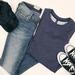 A casual essential that you'll LOVE! This blue marl sweatshirt is stylish, comfy and so easy to wear. This relaxed style drapes effortlessly over your curves, while the crossover design offers a flexible fit for every stage of pregnancy and after. A great transitional piece that will disguise your postpartum belly after and give you easy nursing access for your baby, too! Pair with leggings or jeans for easy Sunday morning style.