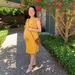 Fabulous, fun and frilly...level up your breastfeeding glam game with this gorgeous light weight ponte knit marigold dress. Nursing access is behind the cute ruffle details. Simply unzip at your shoulder for easy and discreet nursing access. A great dress for any special or professional occasion. Zipper at back