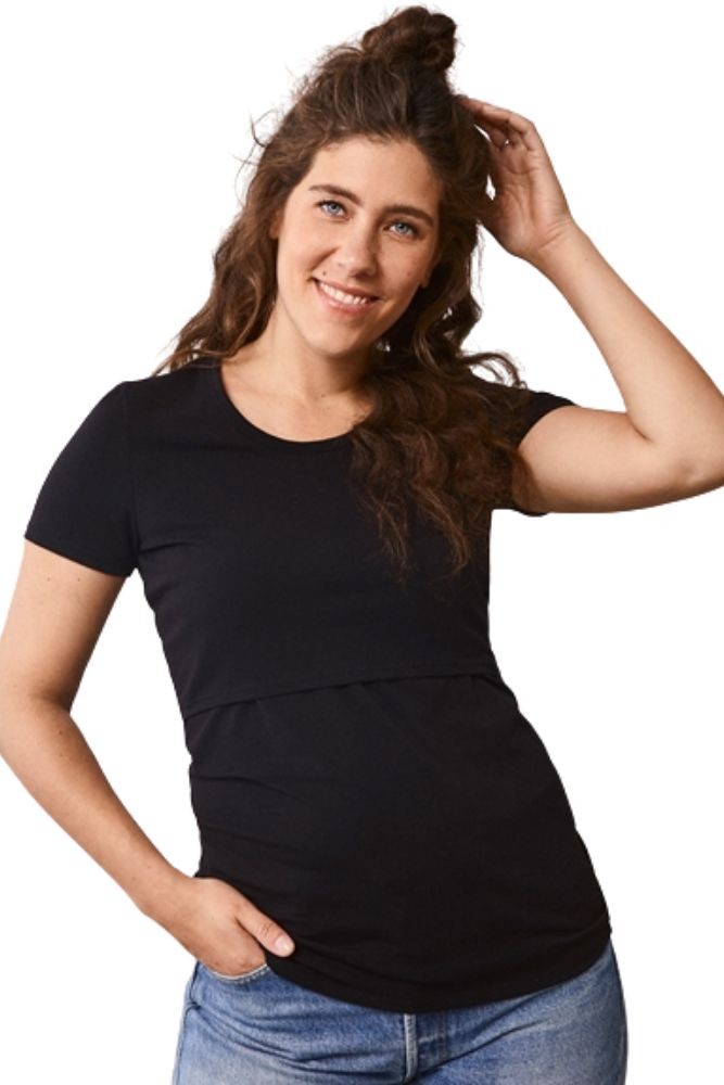 Long, lean and beautifully basic. This maternity & nursing tee is an absolute wardrobe necessity! Comfortable, organic cotton fabric is great for you and your new baby.